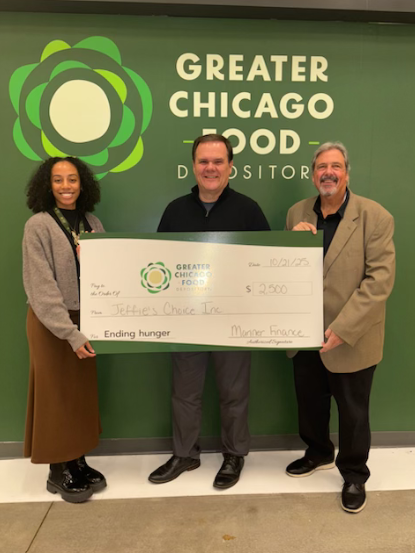 Jeffie’s Choice, Inc., through Mariner Finance, donated $2,500.00 to the Greater Chicago Food Depository on October 15, 2025.